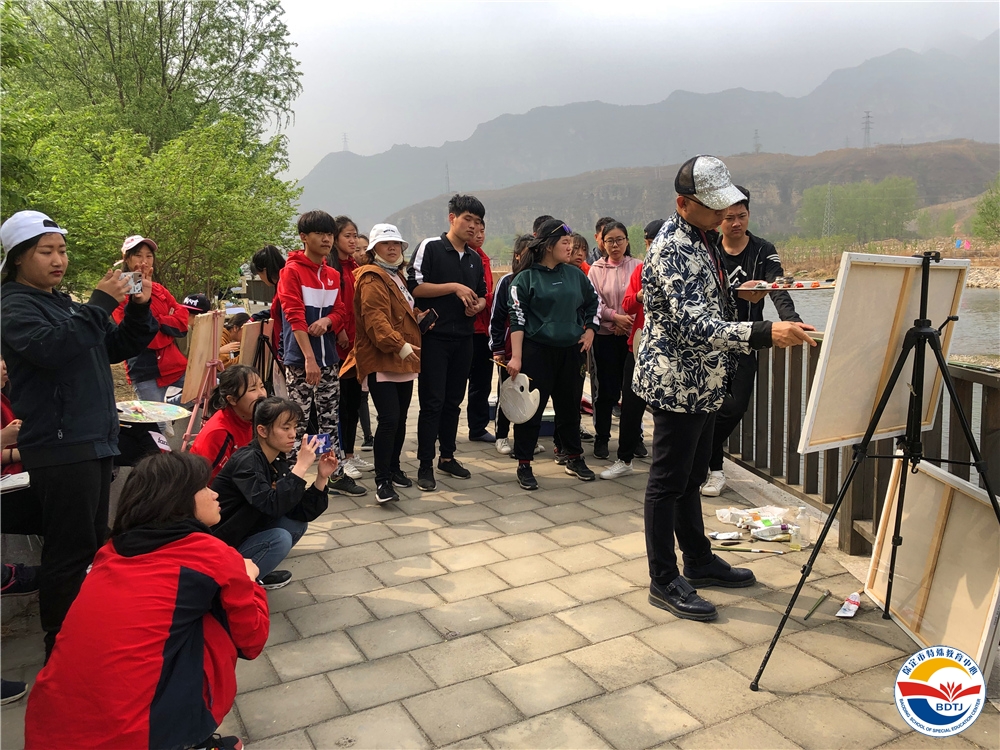 這里是太行山余脈,山勢(shì)雄偉,河水流暢,山鄉(xiāng)靜寂。2019年4月22日,保定市特殊教育中心啟聰部九年級(jí)、高一、高二共40名學(xué)生,在帶隊(duì)教師帶領(lǐng)下,來(lái)到這里——野三坡寫生基地,進(jìn)行為期一周的美術(shù)寫生。
