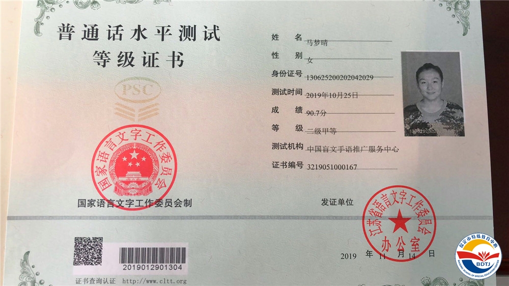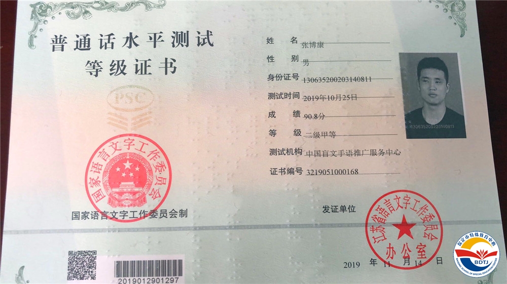 我校啟明部學(xué)生張博康、馬夢(mèng)晴參加在南京舉行的殘疾人普通話測(cè)試合格。這是我省殘疾人首次參加普通話測(cè)試,也開(kāi)創(chuàng)了我市殘疾人參加普通話測(cè)試的先河。