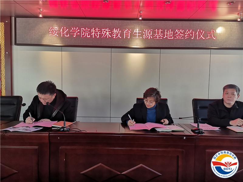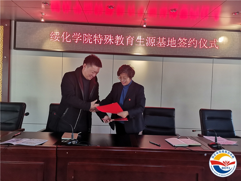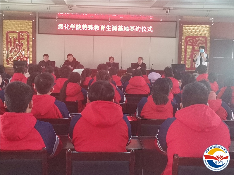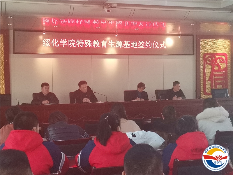 11月8日下午,綏化學(xué)院招生辦一行兩人蒞臨我校,與我校簽訂“優(yōu)質(zhì)生源基地”協(xié)議。簽約儀式在五樓會議室舉行,學(xué)校校長武美英、副校長曹挺、教務(wù)處副主任吳穎以及聾部高中全體師生參加簽約儀式。