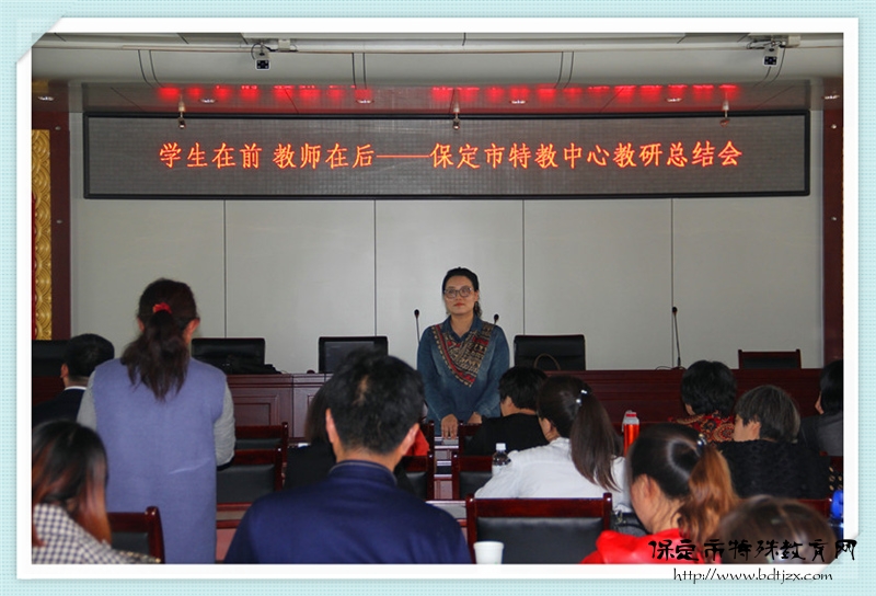 為了進(jìn)一步提高保定市特殊教育教師隊(duì)伍的教育科研水平,促進(jìn)學(xué)校內(nèi)涵發(fā)展,實(shí)現(xiàn)“科研興校,科研興教”戰(zhàn)略,從而推動(dòng)我市特殊教育科學(xué)事業(yè)更快發(fā)展,2018年4月20日下午,在保定市特教中心五樓會(huì)議室,河北大學(xué)李娟教授、各縣特教同仁和我校全體教職員工一起進(jìn)行了《學(xué)生在前,教師在后》教研活動(dòng),引導(dǎo)教師思考如何更好地理解啟智部數(shù)學(xué)義務(wù)教育課程標(biāo)準(zhǔn),如何更好的了解特殊兒童的數(shù)學(xué)學(xué)習(xí)規(guī)律,進(jìn)而改善數(shù)學(xué)教學(xué)。