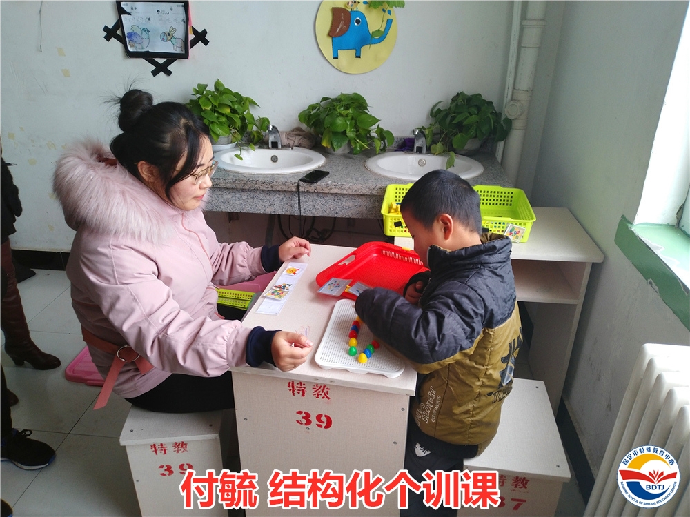 通過與淶源縣特殊教育中心溝通,了解到自閉癥兒童的教學工作一直困擾著他們,老師們摸索嘗試過多種教學方法,教學效果一直不理想。此次送教活動,付毓老師將“結(jié)構(gòu)化”的教學模式帶到了淶源特教,讓困惑已久的老師們眼前一亮。