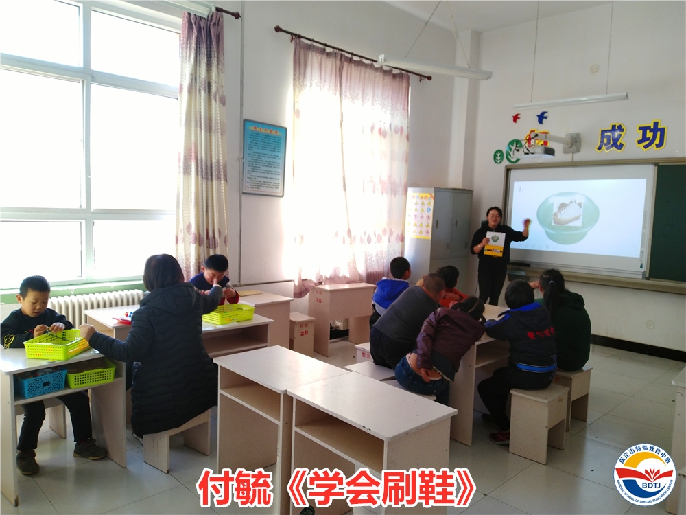 除了結(jié)構(gòu)化教學外,付老師還展示了《學會刷鞋》和《雪白的冬天》兩節(jié)生活適應課,在付老師的引導下,學生們通過視、聽、觸等多種方式觀察生活,并積極回答老師的問題,從而提升他們對生活的參與度。三節(jié)課下來,學生們的能力得到提升,教師們對“結(jié)構(gòu)化”教學模式和生活適應課有了直觀的認識,增強了對自閉癥學生教學的信心,初步轉(zhuǎn)變了傳統(tǒng)教學觀念。與此同時,付老師過硬的專業(yè)素質(zhì)也得到了聽課老師們的認可。