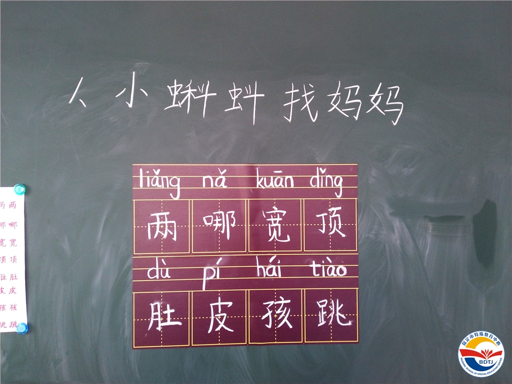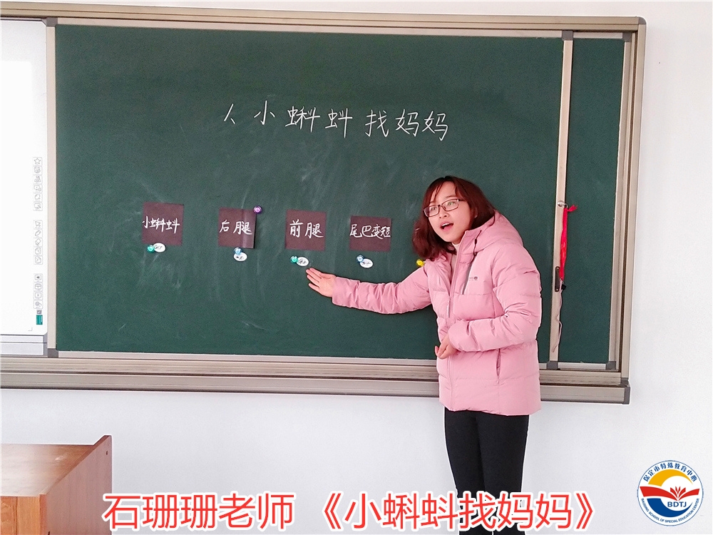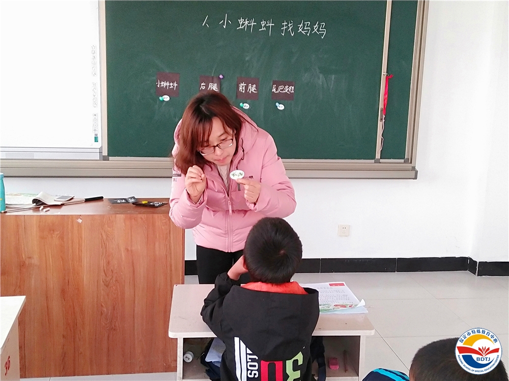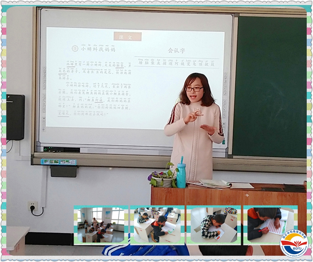 石珊珊老師根據(jù)淶源特教聽障孩子們的實(shí)際情況,選擇了《小蝌蚪找媽媽》的教學(xué)內(nèi)容。為了使孩子們養(yǎng)成良好的語文學(xué)習(xí)習(xí)慣,石老師以“會(huì)認(rèn)字”、“會(huì)寫字”、“會(huì)讀書”為教學(xué)思路,設(shè)計(jì)了3個(gè)課時(shí)的教學(xué)內(nèi)容,通過直觀的圖片展示,拼音、詞意和手語有機(jī)結(jié)合,讓孩子們加深對(duì)生字音、形、意的理解,提高記憶速度。
