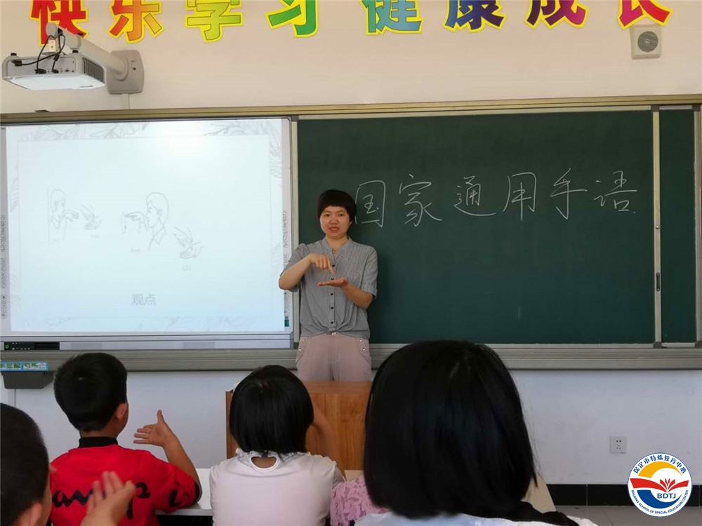 楊瑞華老師已經(jīng)是第二次赴淶源做手語培訓(xùn),在之前培訓(xùn)的基礎(chǔ)上,從手語詞匯的全部改動、部分改動、詞序顛倒、動作理據(jù)、新增詞五個方面角度歸納介紹字母g—l,對淶源特教的老師和學(xué)生們進(jìn)行了詳細(xì)的培訓(xùn),并選取《國家通用手語常用詞表》中常用手語逐一進(jìn)行講解。使淶源特教的教師更好的了解并使用國家通用手語,更好的使用國家通用手語為聽障學(xué)生服務(wù)。