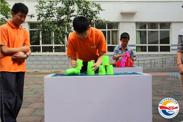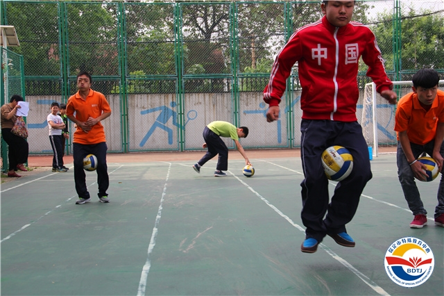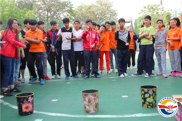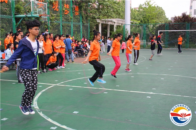 本次運動會根據(jù)啟聰、啟智、啟明三類學(xué)生的不同特點,設(shè)計了投球入桶、腳加球跳、趕豬、兩人三足跑、足球射門、 一分鐘跳繩、擊鼓砸球、飛碟不競速等15個運動項目。學(xué)生參與率高達(dá)80%以上。