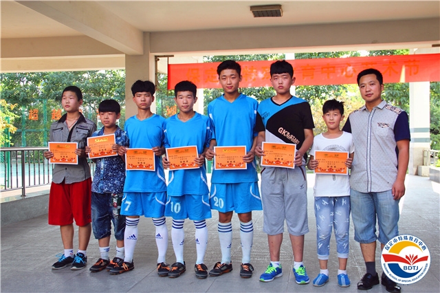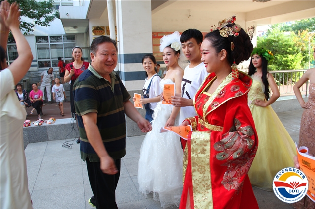 器樂聲聲,敲擊青春的節(jié)奏, 舞步旋轉(zhuǎn),舞動生活的歡欣。相信,通過本屆藝術(shù)節(jié),廣大師生定能將熱情轉(zhuǎn)化為學(xué)習(xí)動力,用知識開啟理想之門,塑造藝術(shù)人生。放飛希望,追求夢想——特教中心2015年校園藝術(shù)節(jié)圓滿結(jié)束!(會后,領(lǐng)導(dǎo)們與獲獎、表演同學(xué)合影留念。)