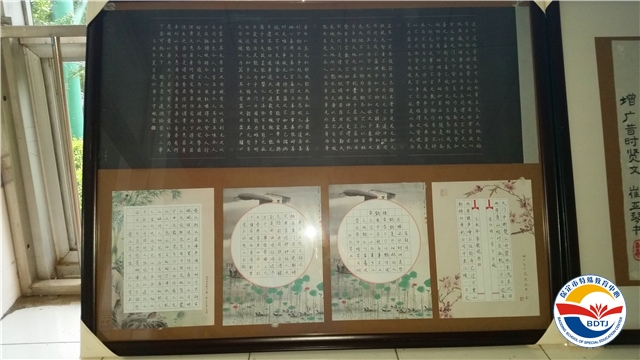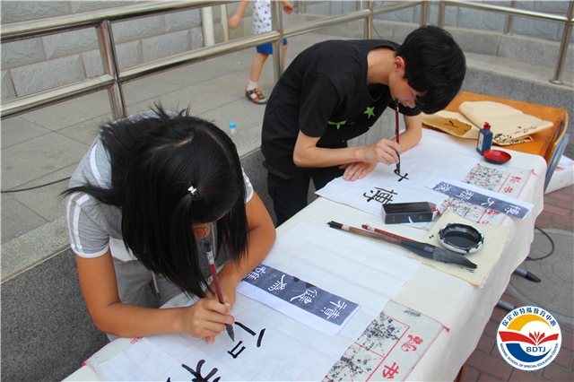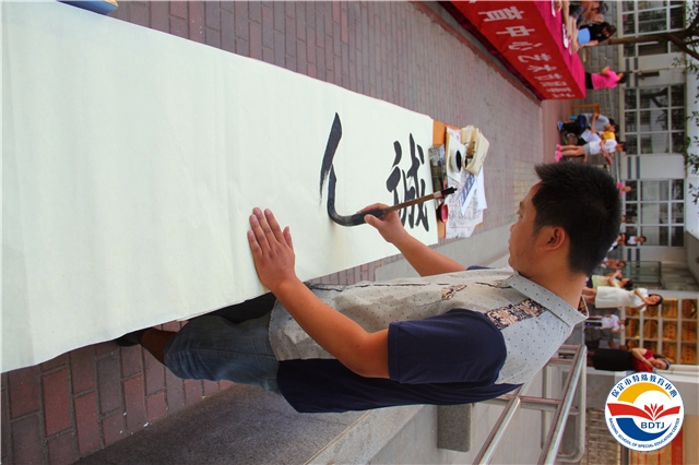 在啟智部李彥浩同學(xué)的鋼琴獨奏——《秋日私語》中,梁連壯和曹瑞蒲老師以及書法興趣小組的幾位學(xué)生為我們現(xiàn)場作畫,揮毫潑墨,展示了老師、同學(xué)們深厚的基本功。(頒發(fā)啟聰部書法、美術(shù)、手工串珠興趣小組獎項)