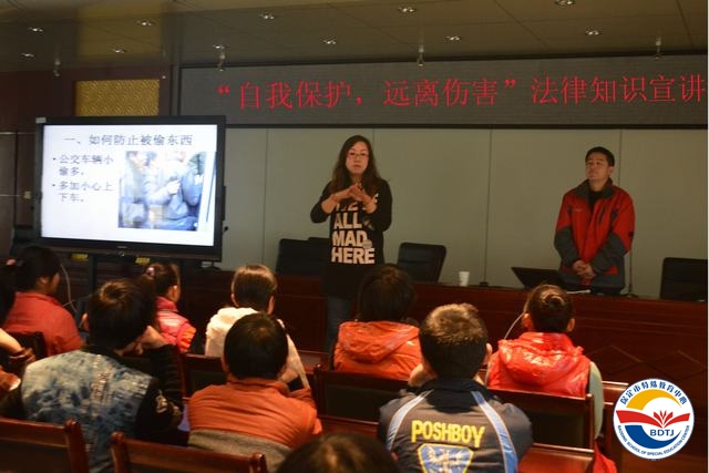 依法治國是社會(huì)發(fā)展的必然趨勢,青少年學(xué)法、懂法、守法勢在必行。尤其對于聽障孩子這個(gè)特殊群體,宣講一些案例,提高學(xué)生們的法律意識(shí),可以更好的保護(hù)自己,讓自己遠(yuǎn)離傷害。司法警官學(xué)院青協(xié)社團(tuán)于2014年11月23日上午來我校舉辦了——“自我保護(hù),遠(yuǎn)離傷害”法律知識(shí)宣講活動(dòng)。通過這次法律宣講,為學(xué)生普及了法律知識(shí),提升了聽障學(xué)生的保護(hù)意識(shí),為學(xué)生們將來步入社會(huì),更好的保護(hù)自我奠定了基礎(chǔ)。