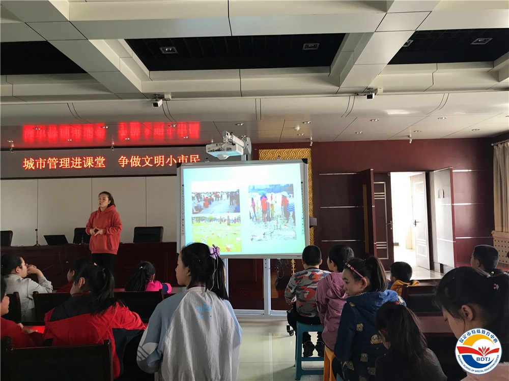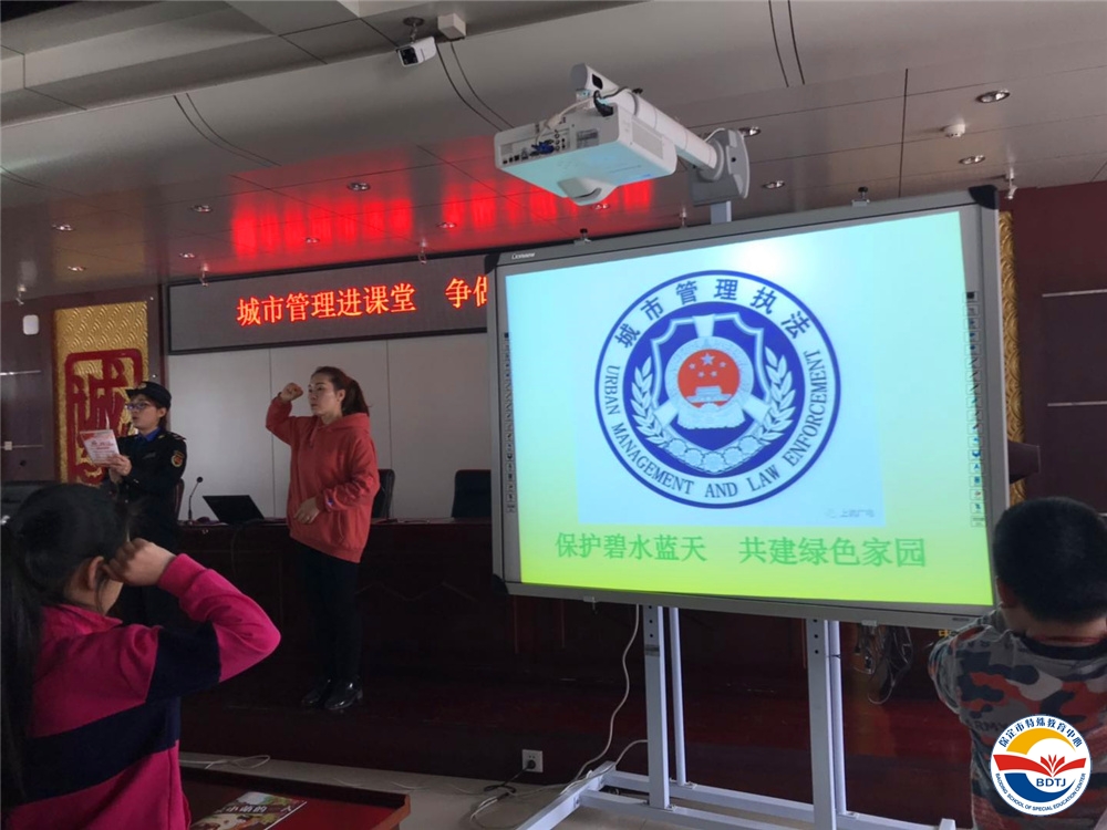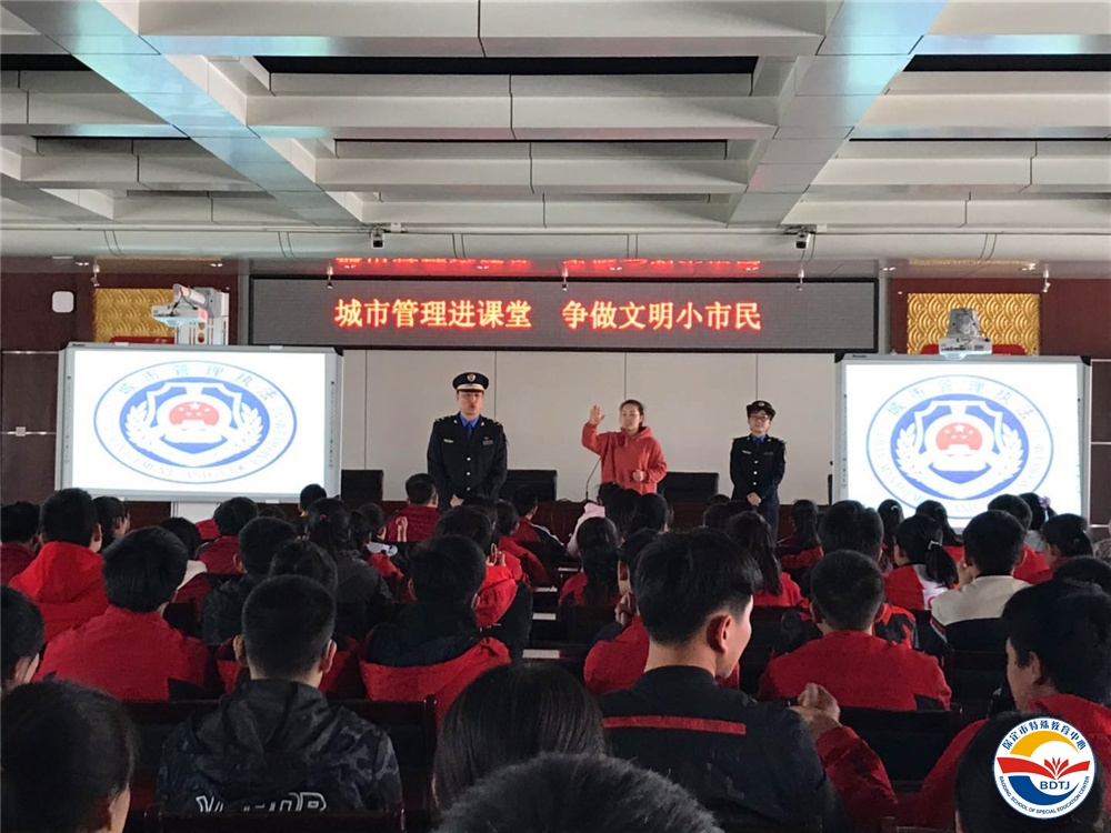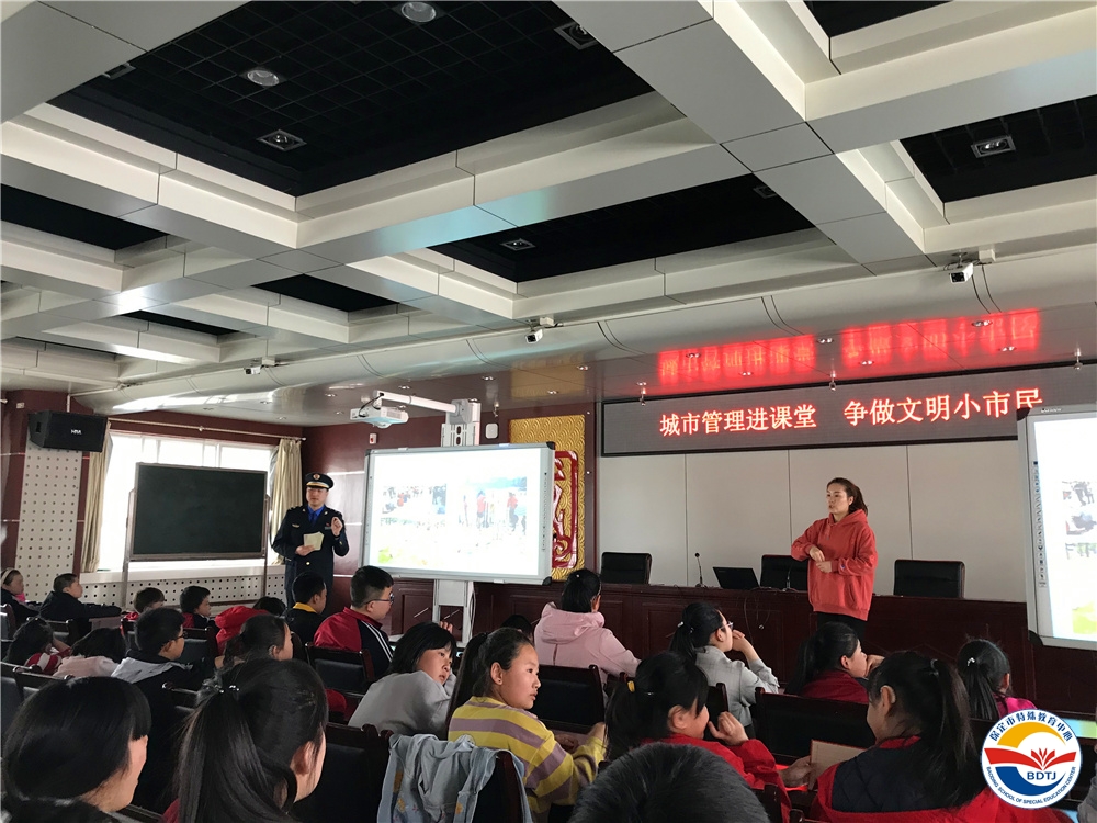為積極響應(yīng)保定市創(chuàng)建全國(guó)文明城市號(hào)召,創(chuàng)建和諧文明校園內(nèi)外環(huán)境,4月8日下午,保定市特殊教育中心特邀競(jìng)秀區(qū)執(zhí)法局劉鵬、曹馨月兩位領(lǐng)導(dǎo)擔(dān)當(dāng)宣講員,在學(xué)校五樓會(huì)議室為全校學(xué)生進(jìn)行了一場(chǎng)主題為“城市管理進(jìn)校園 爭(zhēng)做文明小市民”的講座。