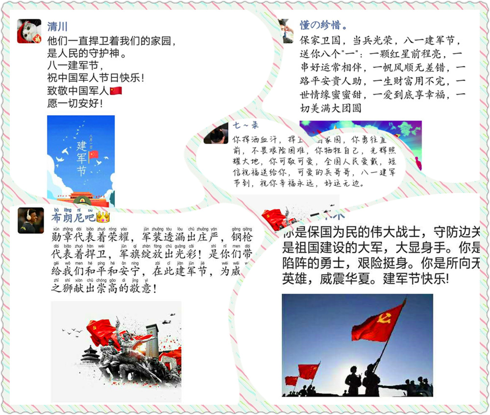 少年興則國興,少年強(qiáng)則國強(qiáng)。這次建軍節(jié)的點(diǎn)贊活動,使學(xué)生們正確認(rèn)識到祖國的歷史和現(xiàn)實(shí),我們要增強(qiáng)愛國情感和振興祖國的責(zé)任感,弘揚(yáng)偉大的中華民族精神,高舉愛國主義旗幟,銳意進(jìn)取、自強(qiáng)不息,真正把愛國之行變成報國之志,愛黨、愛祖國、愛軍隊(duì)、愛人民子弟兵。我校也將繼續(xù)從節(jié)日教育做起,充分利用節(jié)慶日開展各項(xiàng)活動,對全體學(xué)生進(jìn)行愛國主義教育,讓他們今天為振興中華而勤奮學(xué)習(xí),明天為創(chuàng)造祖國輝煌未來貢獻(xiàn)自己的力量!