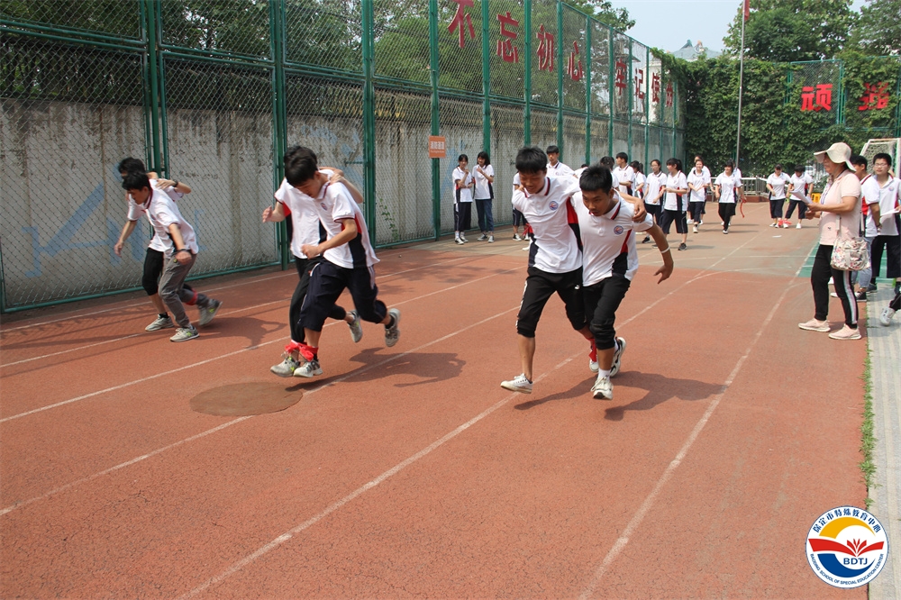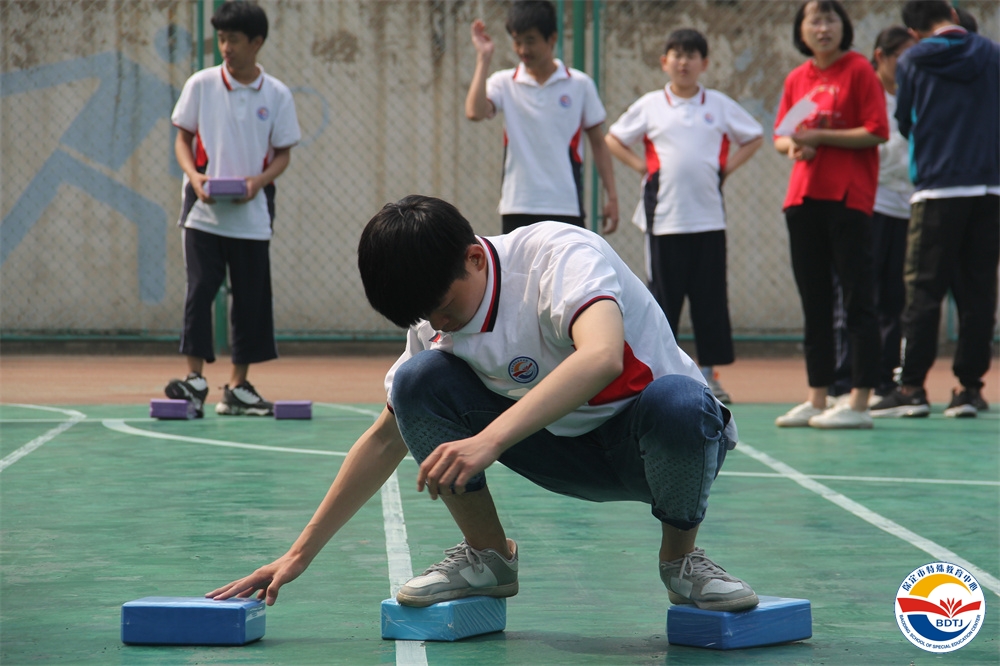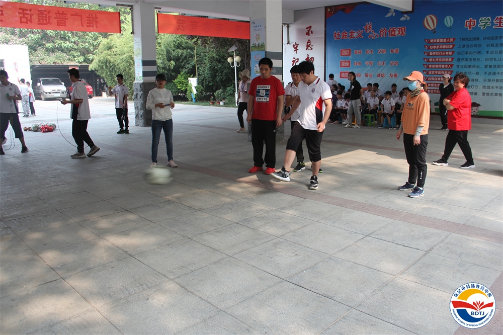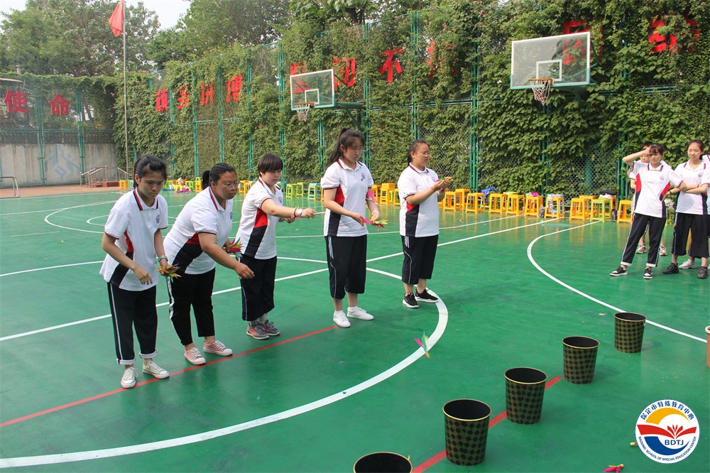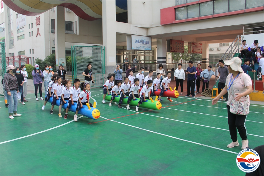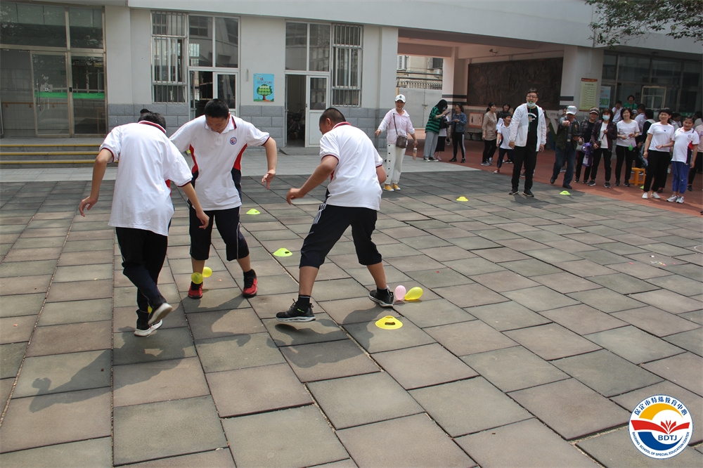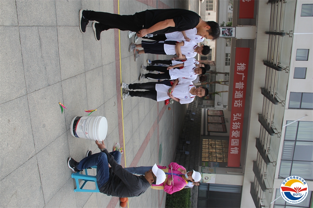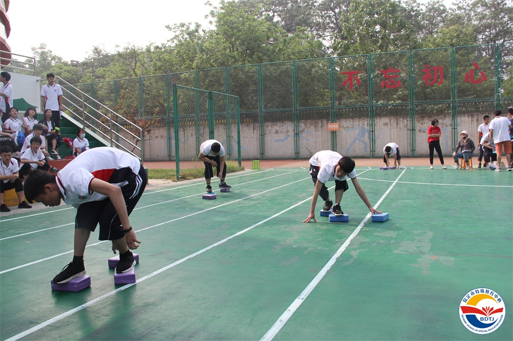 比賽過程中,運動員們個個精神飽滿,斗志昂揚,奮力拼搏,勇爭第一。寧靜的校園頓時沸騰起來,一聲聲此起彼伏的歡呼聲、喝彩聲、加油聲不絕于耳。 本屆運動會設(shè)置的比賽項目依據(jù)“啟聰”、“啟智”、“啟明”三部學生各自認知水平和身體動發(fā)展水平,精心設(shè)計了適合各部同學的比賽項目,啟聰部的比賽項目有“一分鐘跳繩”、“投球入桶”、“腳夾球跳”、“搬磚”、“兩人三足”;啟智部的比賽項目有“足球射門”、“拍球比多”、“保齡球”、“踩氣球”;啟明部的比賽項目有“踢球射門”、“實心球投籃”、“擊鼓砸球”、“一分鐘跳繩”。多種多樣,充滿趣味,讓學生和家長都能輕松愉快地參與。