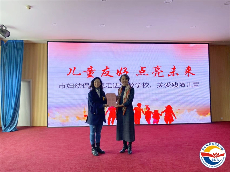 最后,市婦幼保健院兒童保健部的王欲琦部長(zhǎng)為我校低年級(jí)的孩子們提供了免費(fèi)的兒童康復(fù)中心體驗(yàn)券,劉雅楠副校長(zhǎng)替孩子們收下了體驗(yàn)券并對(duì)婦幼保健院醫(yī)護(hù)人員們的愛(ài)心之舉表示衷心的感謝。