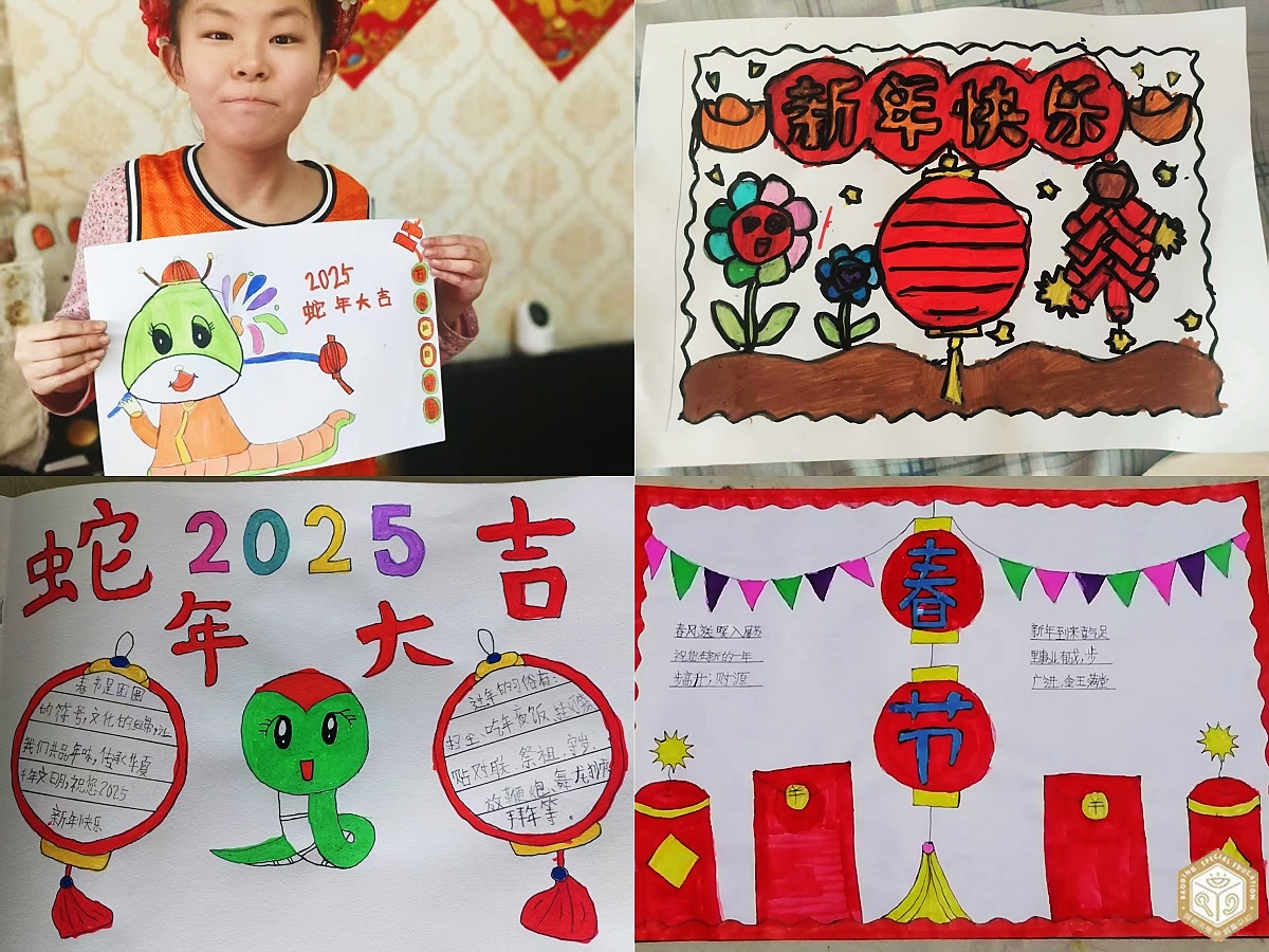 祥蛇賀歲,墨香迎春。在新年熱鬧的氣氛中,學(xué)生們用色彩和創(chuàng)意交織出熱鬧喜慶的新年畫卷。