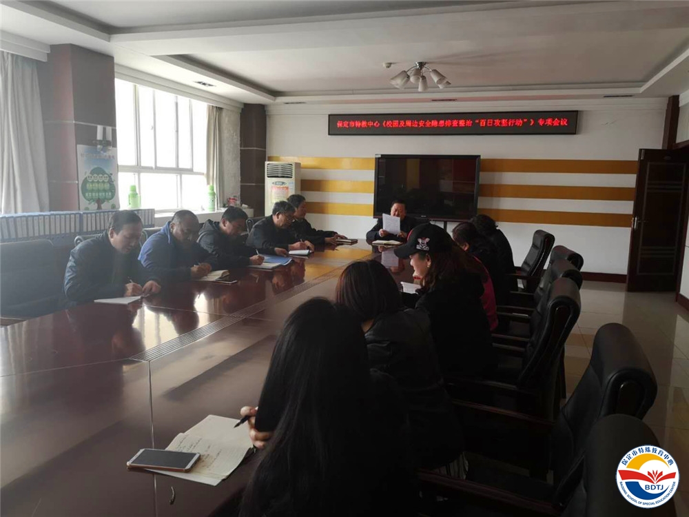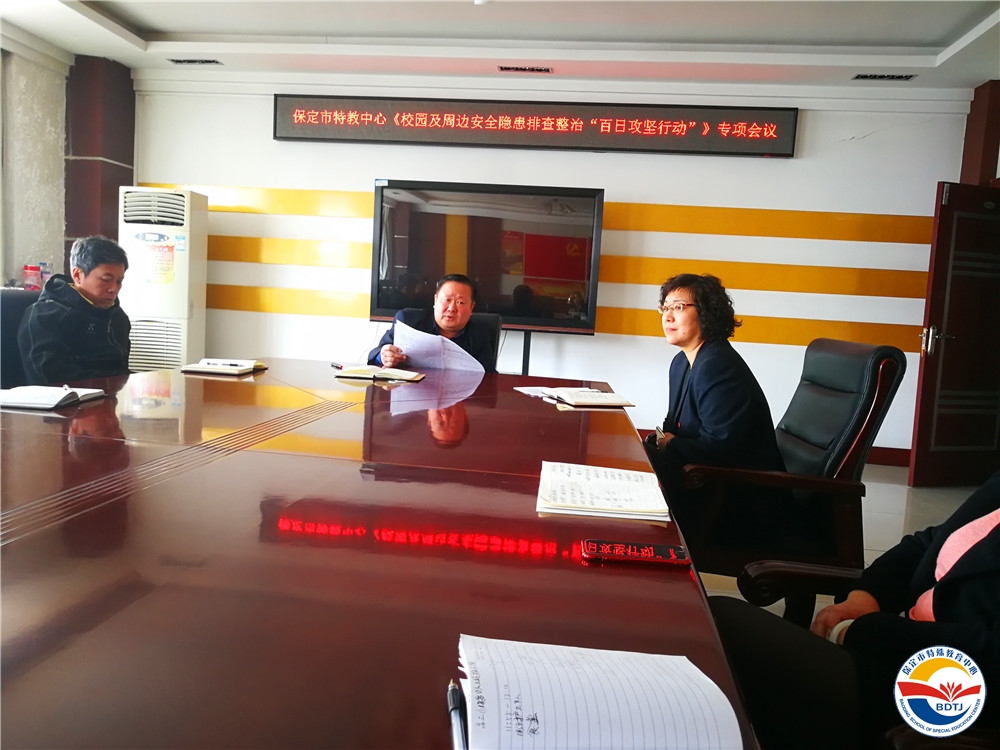 為認真貫徹落實《中共河北省辦公廳河北省人民政府辦公廳關于進一步校園及周邊安全防范工作的緊急通知》和市教育局《校園及周邊環(huán)境隱患排查整治“百日攻堅行動”關實施方案》的相關要求及相關會議精神,切實加強校園及周邊環(huán)境綜合治理工作,打造安全和諧的育人環(huán)境,保障師生安全,4月4日上午,保定市特殊教育中心召開整治校園及周邊安全工作專項會議。校長楊衛(wèi)國、黨支部書記武美英、副校長周建忠、曹挺及全體中層及以上領導出席會議。