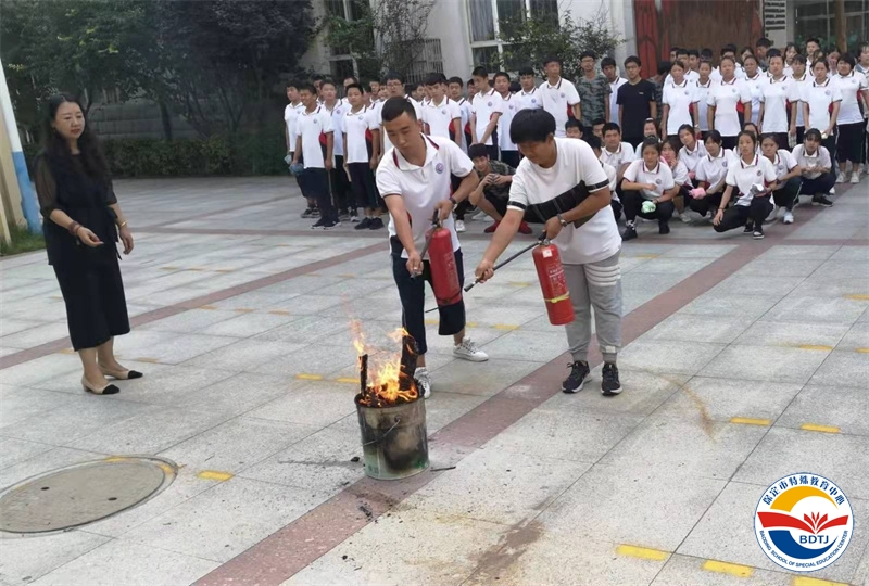 新學期伊始,九月的特教,伴隨著教官嘹亮口令聲中,拉開了軍訓的帷幕。為切實提高我校師生消防安全意識,幫助學生正確掌握消防器材使用方法和人員受傷時的自救互救能力,9月15日下午,我校開展了軍訓期間消防安全教育暨宿舍區(qū)域消防安全演練活動。