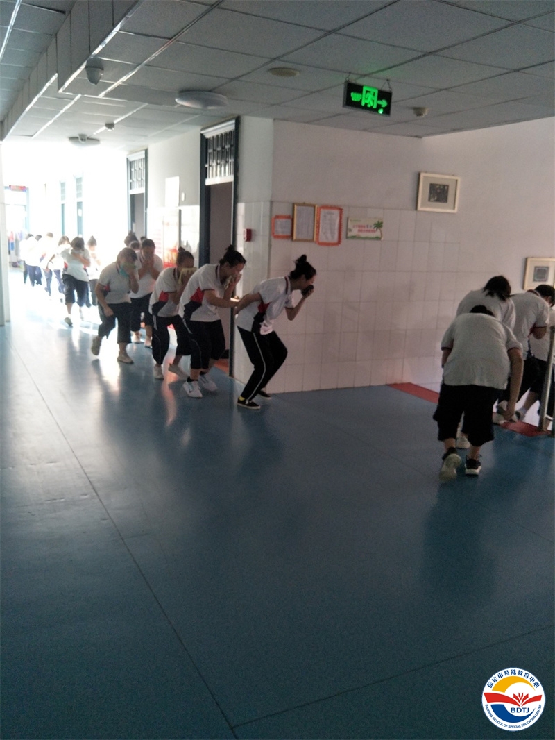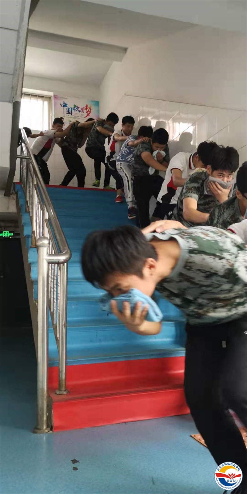 教官生動講解,使學生入心入腦。教官詳細講解和示范逃生動作要領。疏散逃生時,可采取低姿勢逃生,上身彎腰,人盡可能向地面靠近,重心降低。按照逃生門與樓梯就近原則,學生按順序排隊逃生,注意保護自己,防止摔倒。