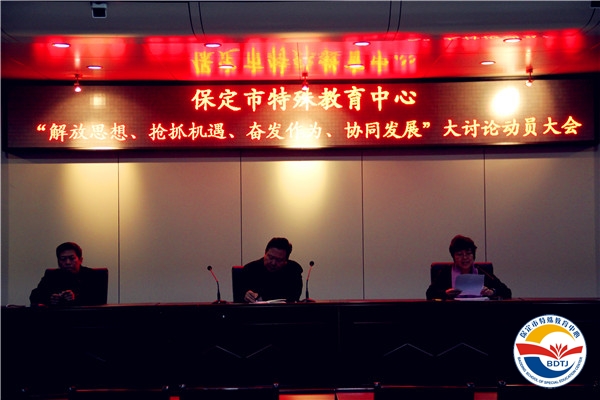 10月19日下午4:30,保定市特教中心在學校五樓會議室召開了“解放思想、搶抓機遇、奮發(fā)有為、協同發(fā)展”大討論動員大會。會上,武書記宣讀了大討論實施方案,楊校長作了動員講話,要求領導班子領會精神,統一思想,提高認識,把思想和行動統一到市委、市教育局的統一部署上來。動員大會拉開了學校大討論活動的帷幕。