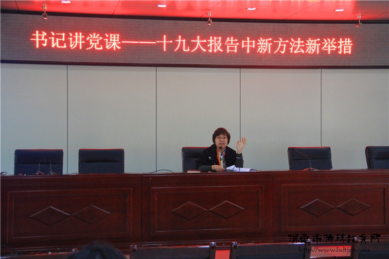 11月3日下午,保定市特殊教育中心在校五樓會議室召開傳達(dá)學(xué)習(xí)黨的十九大精神全體教職工會議。黨支部書記武美英帶領(lǐng)大家首先學(xué)習(xí)了黨的十九大主要精神,包括大會主題、報告的13個方面、40個新提法新舉措、黨章修改主要內(nèi)容等,并就全校學(xué)習(xí)宣傳貫徹十九大精神作動員部署。