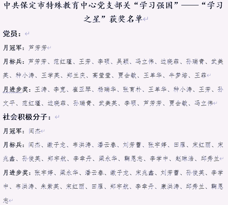 在這2020年建黨99周年來臨之際,我校為慶祝黨的生日,舉辦“獻禮七一、學(xué)習(xí)再出發(fā)”系列活動,再次掀起“學(xué)習(xí)強國”學(xué)習(xí)高潮,黨支部評選出黨員教師“月冠軍”1名,“月標兵”、“月進步獎”各17名,以表達廣大黨員教師向黨傾訴心聲、莊嚴承諾:不忘共產(chǎn)黨的責任,把自己無悔的青春全部獻給黨!