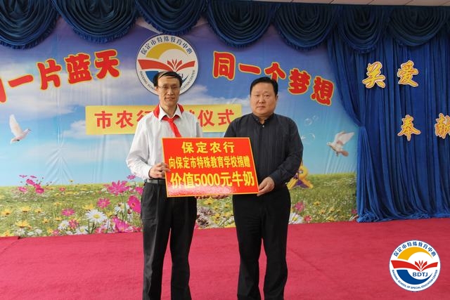 活動中保定市農(nóng)業(yè)銀行書記丘相宇代表保定農(nóng)行向特教中心的學生捐贈了價值五千元的健康牛奶。同時,保定市農(nóng)業(yè)銀行擬選定三豐路支行作為與保定市特殊教育中心合作的分支機構(gòu)建立長期的合作機制,后續(xù)的活動主要有以下兩項:一是在保定市農(nóng)業(yè)銀行三豐路支行為保定市特殊教育中心設立專門帳戶,接受社會愛心人士的專項捐款,屆時該帳戶將在市內(nèi)各媒體公布;二是從下周起在保定市農(nóng)業(yè)銀行三豐路支行轄區(qū)內(nèi)的四個網(wǎng)點設立捐贈箱,接受社會愛心人士對特教中心的專項捐款。