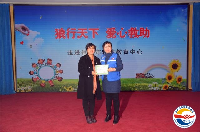 “保定狼行天下 愛心救助”的愛心人士還為孩子們帶來了價(jià)值約8000元的書籍和文具。武書記代表校領(lǐng)導(dǎo)對(duì)“保定狼行天下 愛心救助”的義舉表示衷心的感謝,并為他們頒發(fā)“愛心捐贈(zèng)證書”。我校同學(xué)和到場的愛心人士代表進(jìn)行了文藝演出和游戲互動(dòng)之后,美味的蛋糕大餐正式開始。在寒冷的冬日,同學(xué)們不僅享受了可口的蛋糕,更感受到了來自社會(huì)愛心人士對(duì)我們的關(guān)愛。感謝“保定狼行天下 愛心救助”的愛心人士的愛心善舉,讓這些特殊孩子們享受同在藍(lán)天下的幸福!