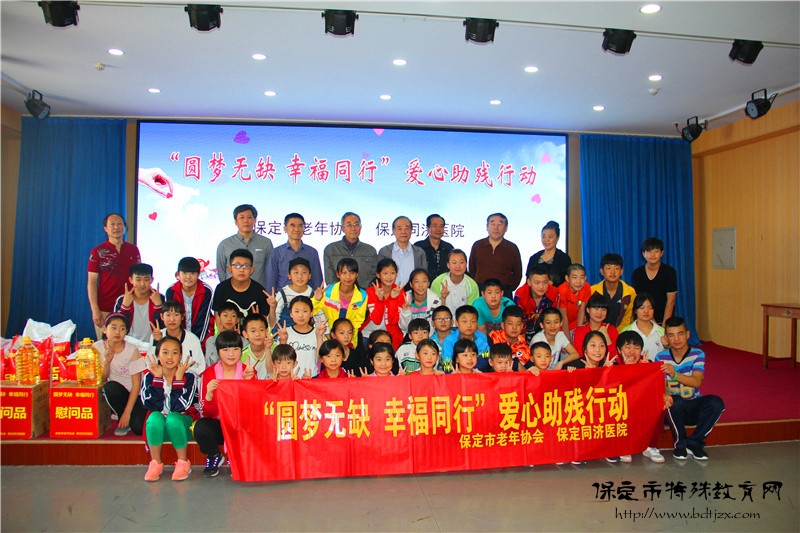 最后,學(xué)生代表與保定市特殊教育中心校領(lǐng)導(dǎo)、保定市老年協(xié)會(huì)和保定同濟(jì)醫(yī)院領(lǐng)導(dǎo)合影留念。
