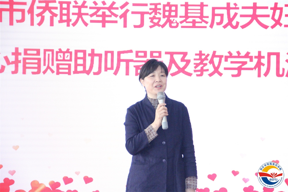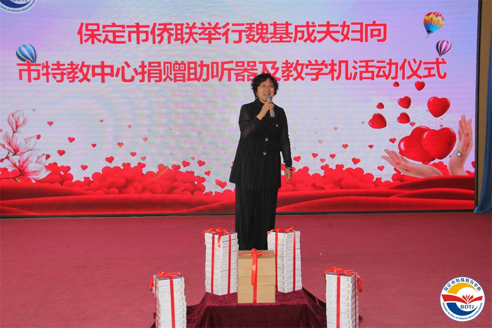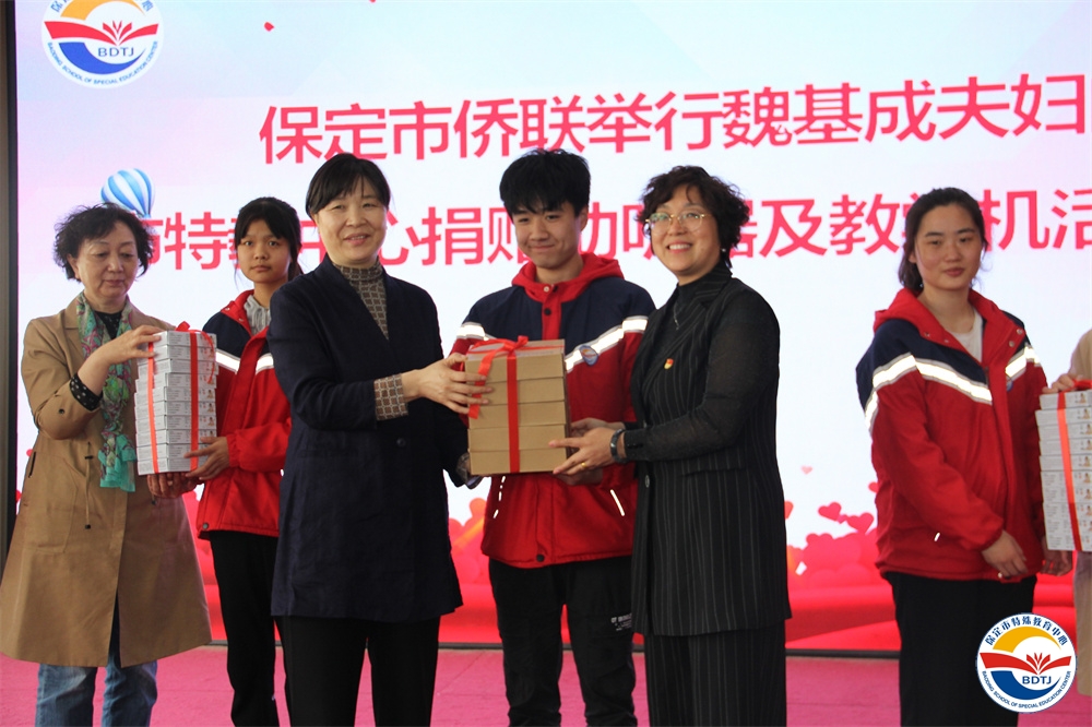 2021年4月27日上午,“魏基成天籟列車”載著滿滿的愛,再次駛?cè)氡6ㄊ刑厥饨逃行模瑸楹⒆觽儙砀咂焚|(zhì)助聽器和語音教學(xué)機(jī)。參加捐贈(zèng)儀式的有市僑聯(lián)黨組書記龐穎、黨組成員副主席李玉華、黨成員四級(jí)調(diào)研員林薇、保定市特殊教育中心黨支部書記、校長(zhǎng)武美英、滿紅宇副校長(zhǎng)、裴莫非副校長(zhǎng)、劉雅楠副校長(zhǎng)以及啟聰部師生。