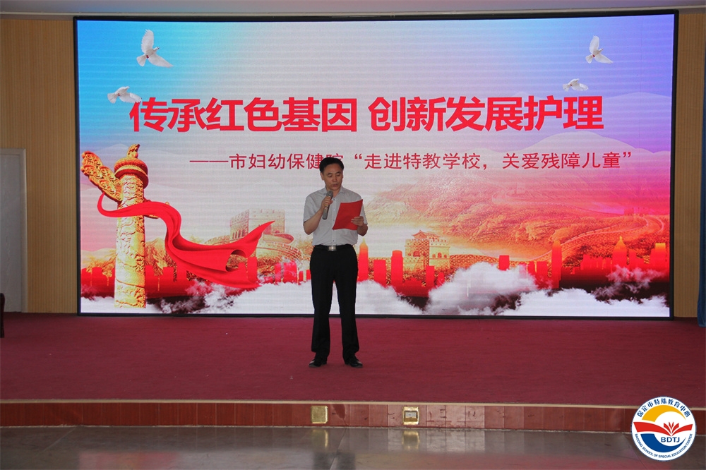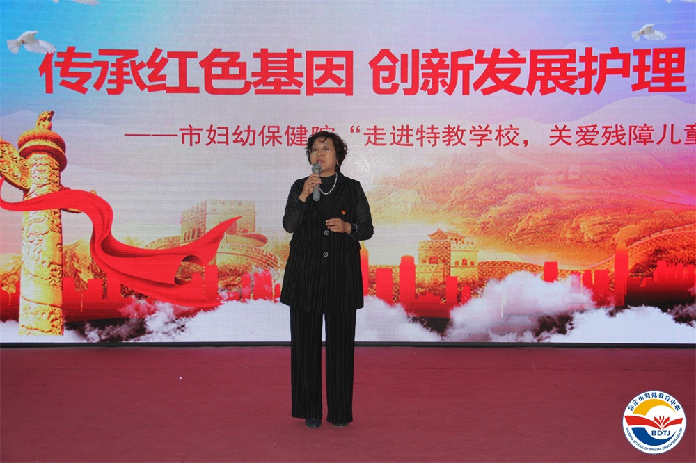 保定市特殊教育中心校長武美英致歡迎詞,武校長介紹了學(xué)校情況,并對醫(yī)護(hù)人員給學(xué)生的關(guān)愛表示誠摯的感謝。
