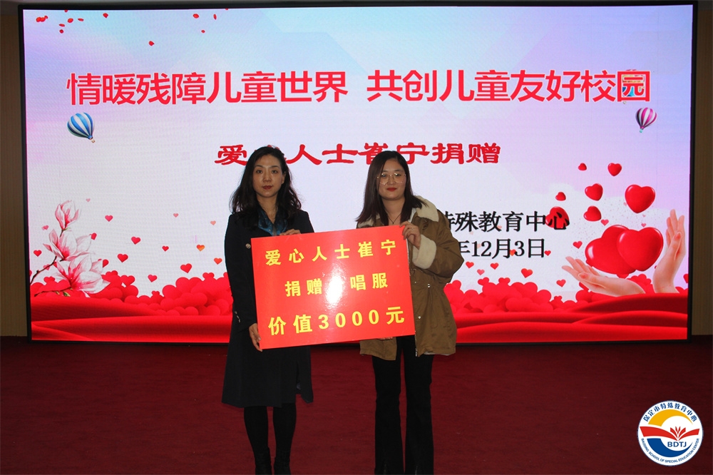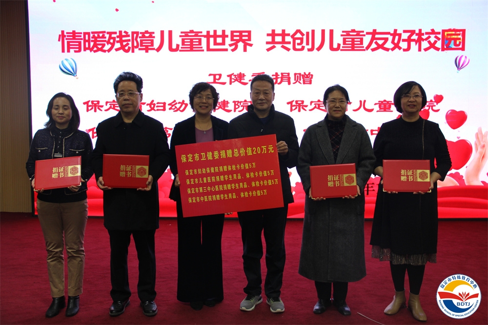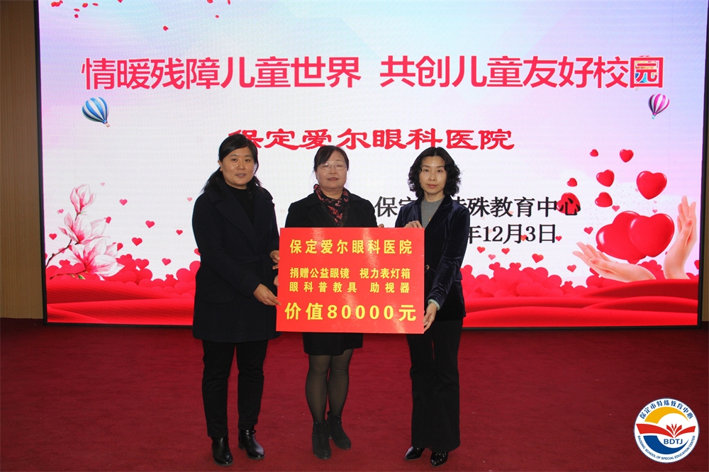 情暖殘障兒童世界,共創(chuàng)兒童友好校園,在第30個(gè)國際殘疾人日來臨之際,我們衷心的希望有更多的企事業(yè)單位,更多的愛心人士加入到扶殘助殘的行列中來,伸出溫暖的手、獻(xiàn)出火熱的心,通過全社會的共同努力,讓殘障的學(xué)生能沐浴陽光雨露、享有碧水藍(lán)天,保定市特殊教育中心也將不負(fù)所有愛心團(tuán)體及企業(yè)的關(guān)懷,讓學(xué)生的缺陷在活動中得到康復(fù)與補(bǔ)償,不斷培養(yǎng)學(xué)生自信、自強(qiáng)、自立的良好品質(zhì),為最終實(shí)現(xiàn)殘疾人“平等、參與、共享”的崇高目標(biāo)而努力奮斗!為保定市兒童友好城市和品質(zhì)之城建設(shè)貢獻(xiàn)力量。