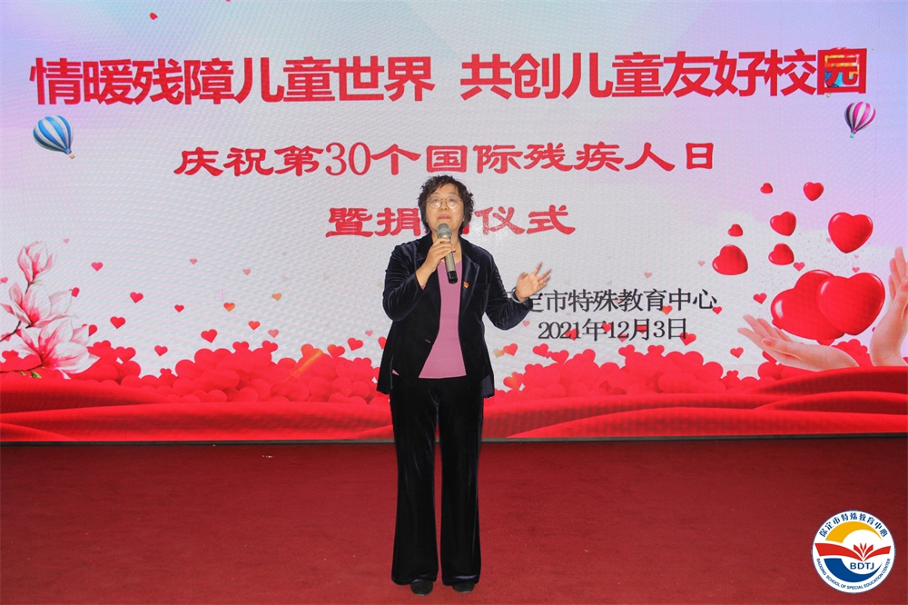 最后,保定市教育局副局長董群發(fā)表了講話,希望有更多的企事業(yè)單位,更多的愛心人士加入到扶殘助殘的行列中來。