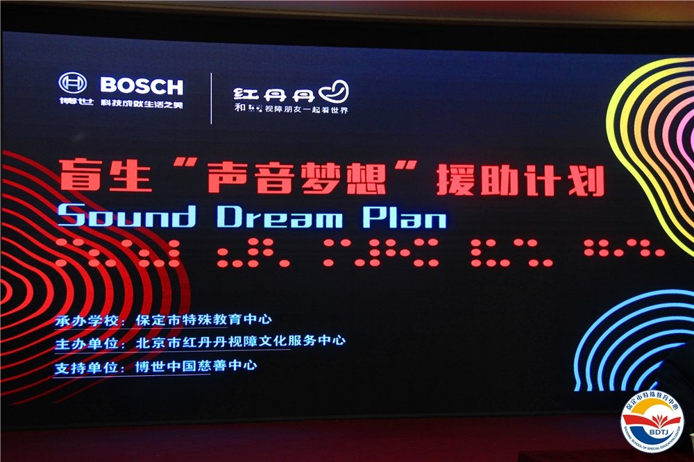 在國(guó)際助殘日到來之際,11月21日下午,在特殊教育中心三樓多功能廳,成功舉行“聲音夢(mèng)想”援助計(jì)劃——視障青少年語言基礎(chǔ)興趣班開班及掛牌儀式,“聲音夢(mèng)想”援助計(jì)劃正式落戶該校!此計(jì)劃由北京市紅丹丹視障文化服務(wù)中心主辦,博世中國(guó)慈善中心資助,支持全國(guó)七所盲校搭建“聲音夢(mèng)想錄音室”,保定市特教中心是第四個(gè)項(xiàng)目點(diǎn)。