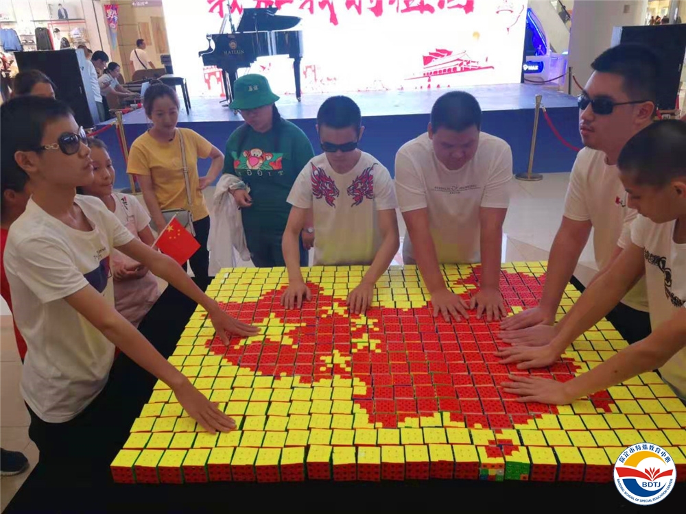 盲生轉(zhuǎn)動(dòng)魔方 獻(xiàn)禮新中國(guó)70華誕——保定市特教中心盲生魔方社團(tuán)拍攝“我和我的祖國(guó)”快閃活動(dòng)