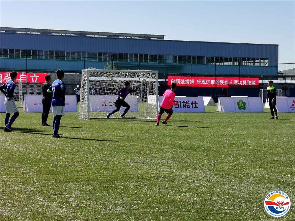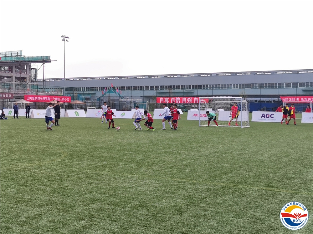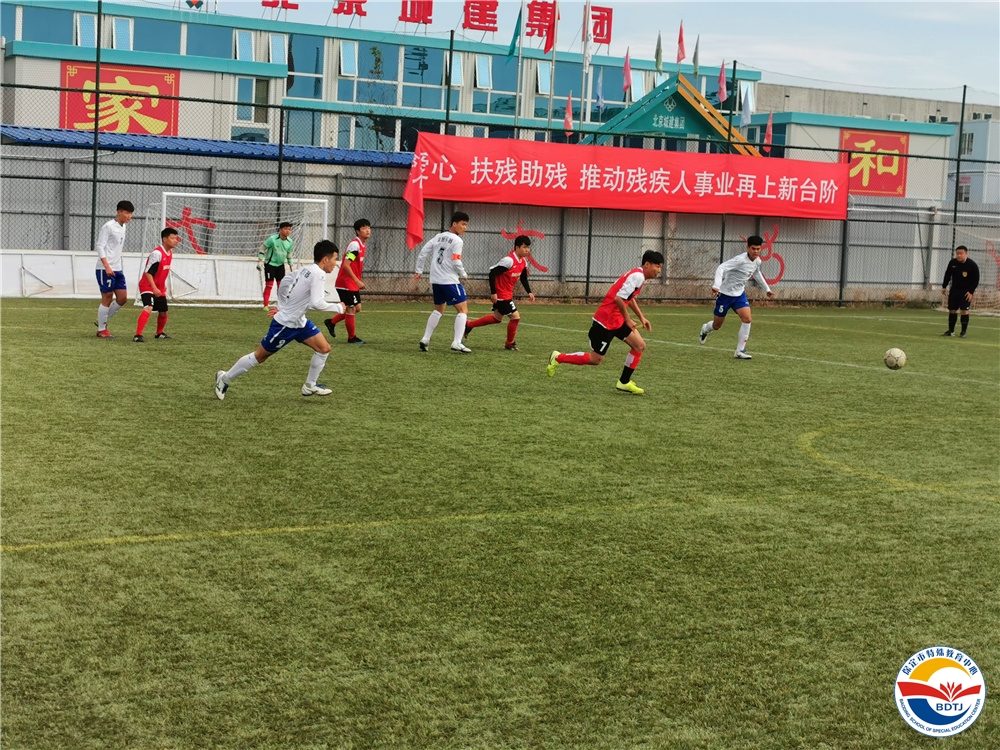 本次比賽在經(jīng)過南北賽區(qū)預(yù)選賽的選拔后,由來自13個(gè)省市的26支基層殘疾人足球隊(duì)參加了在北京進(jìn)行的全國決賽。聾人足球決賽分A、B兩組,我校代表的河北隊(duì)被分在B組。B組對手實(shí)力頗為強(qiáng)勁,困難頗多,但隊(duì)員們敢打敢拼,團(tuán)結(jié)協(xié)作,經(jīng)過小組3場比賽后,以小組第一名的優(yōu)異戰(zhàn)績躋身總決賽,對抗實(shí)力強(qiáng)大的陜西隊(duì)。
